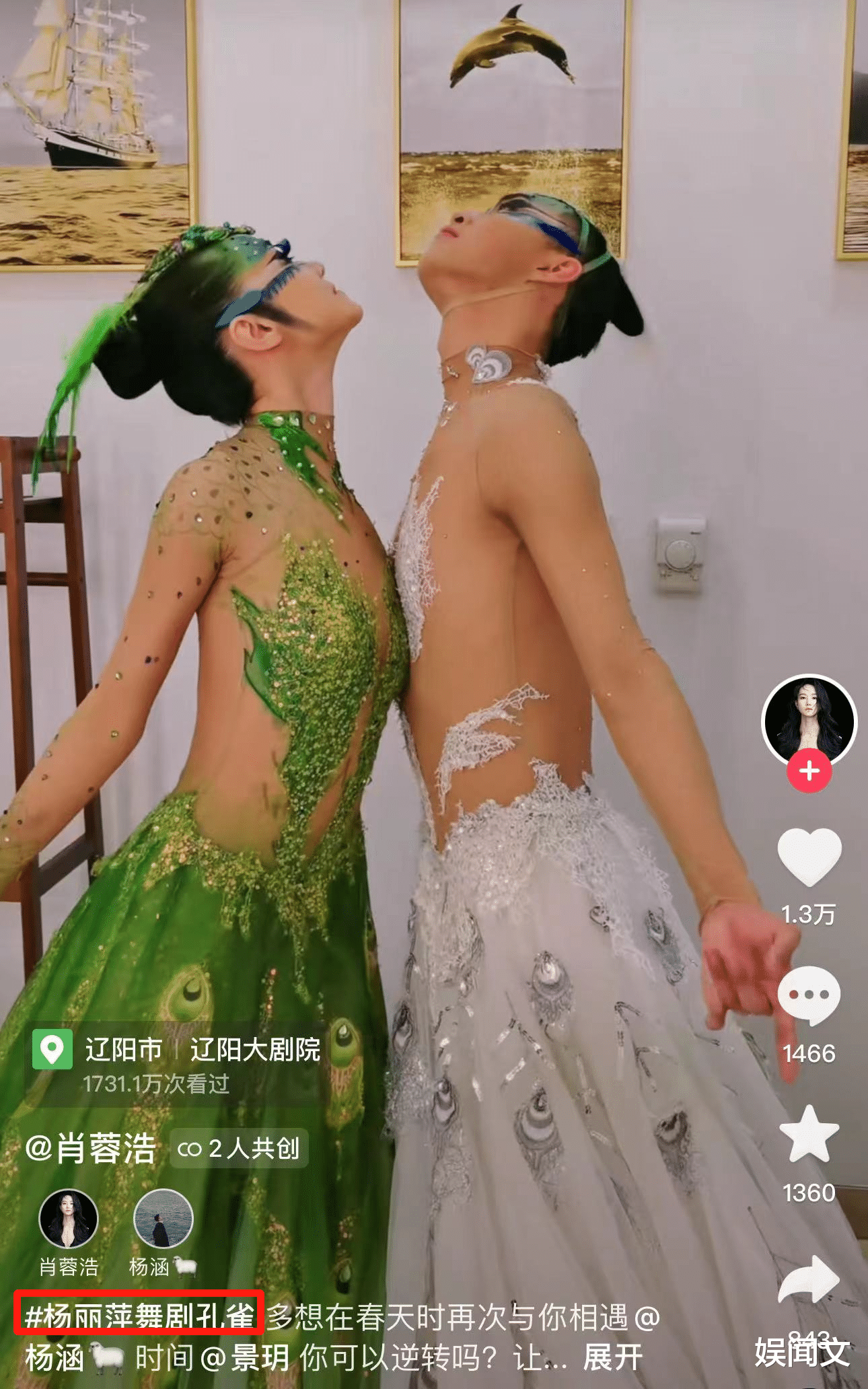 据悉,近日肖蓉浩在社交账号上晒出一段视频,分享自己在台下与男舞者杨涵一块跳孔雀舞的画面。