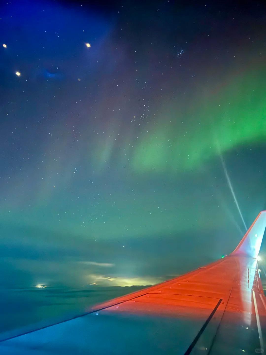 飞机窗外的北极光(图片来源:受访者社交账号)