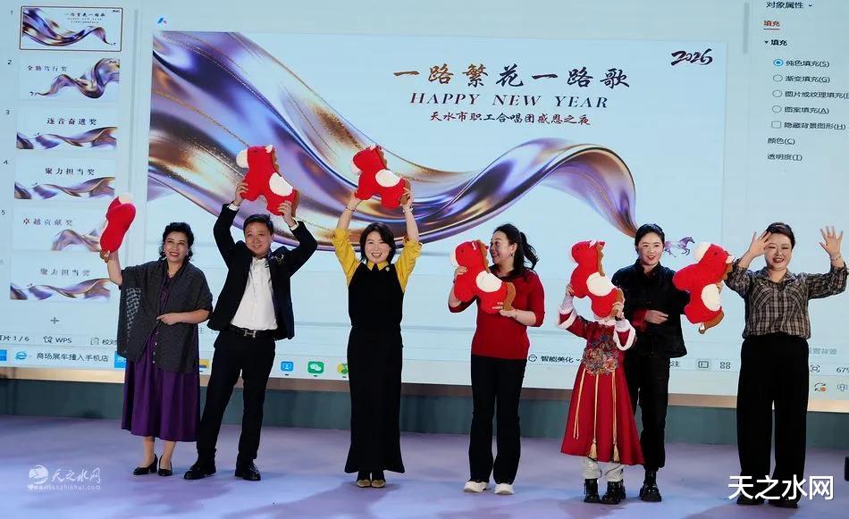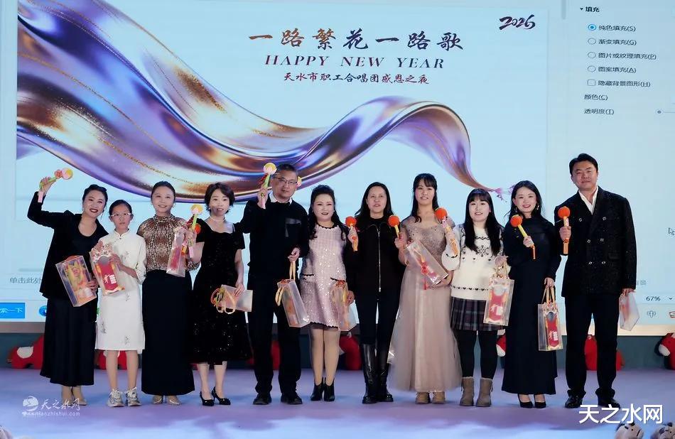 歌声汇聚暖流,掌声致敬热爱。12月28日下午,天水市职工合唱团“一路繁花一路歌”主题年会温情启幕。市相关领导、全体团员、家属及艺术界特邀嘉宾近两百人欢聚一堂,在欢声笑语中回顾一年来的音乐旅程,表彰先进典型,共迎新春到来。