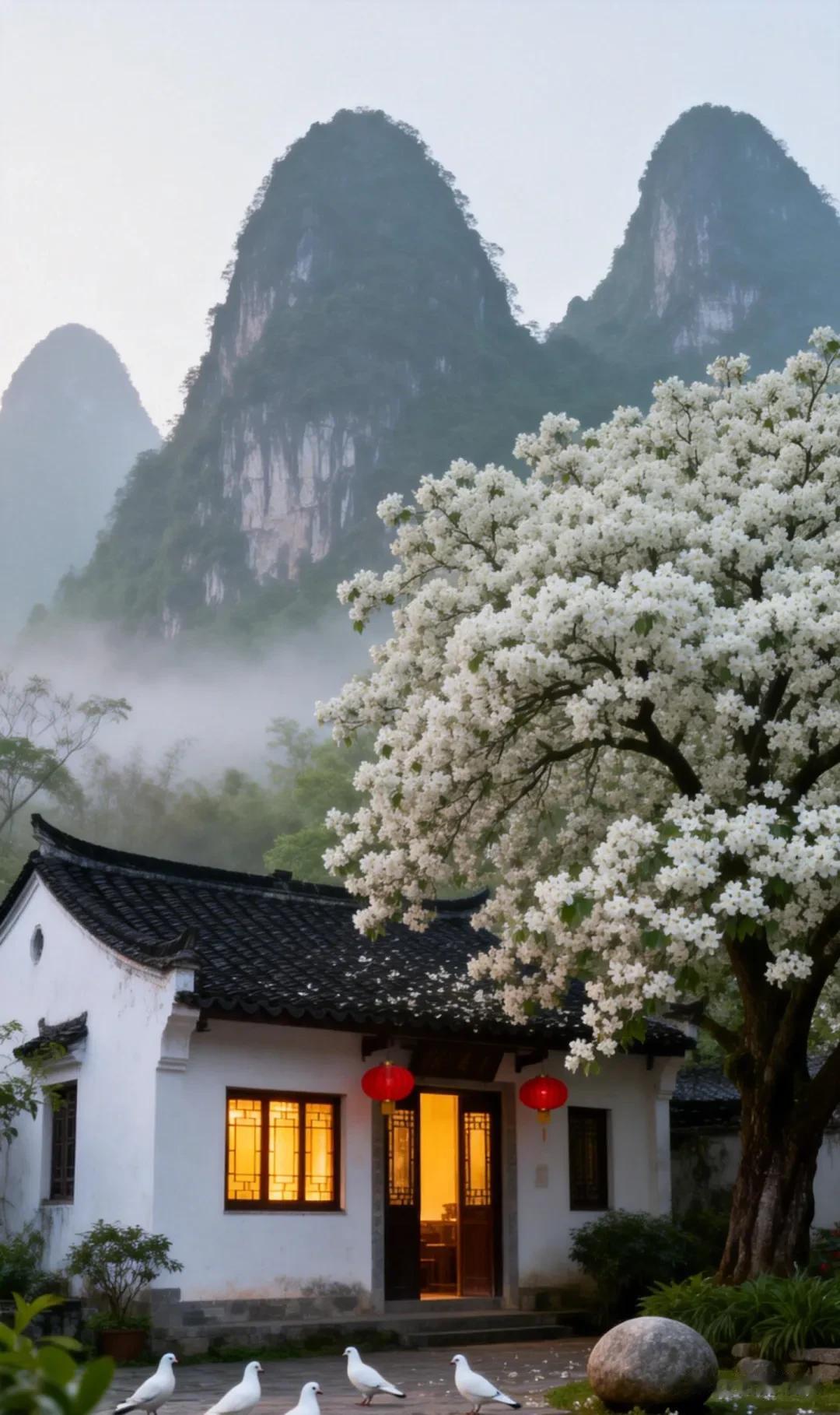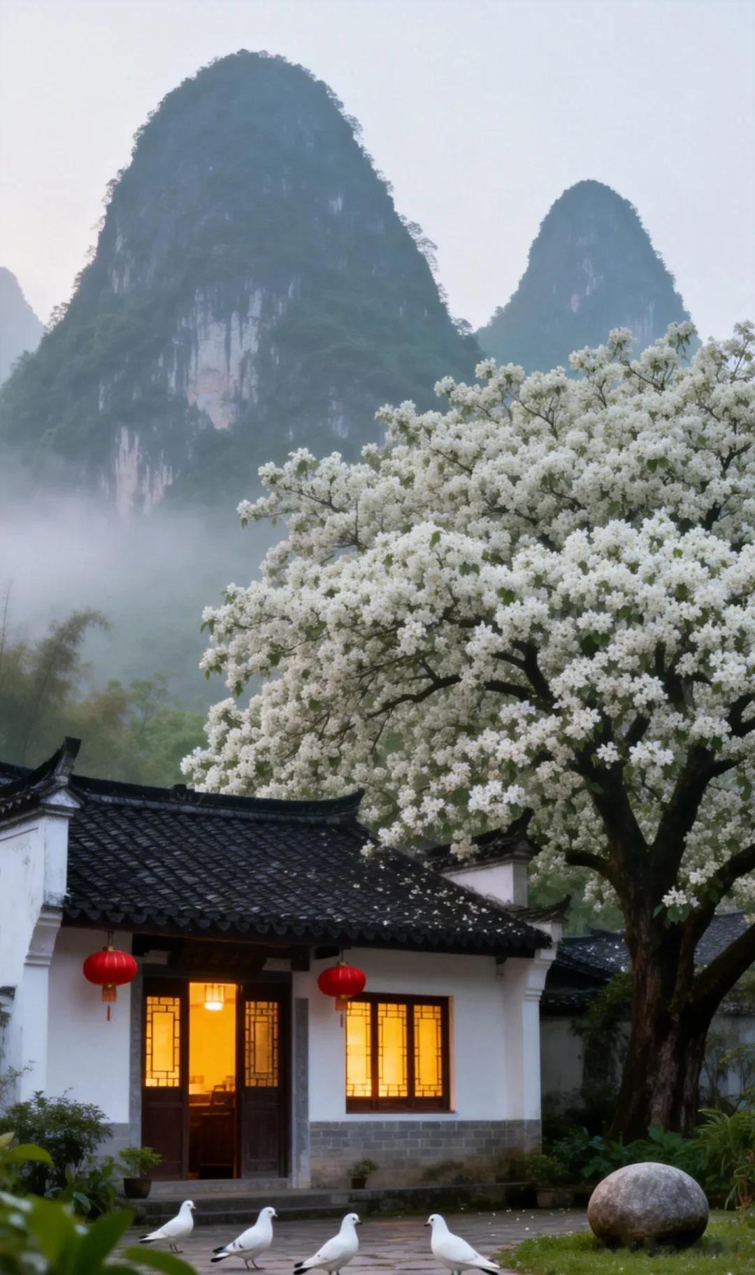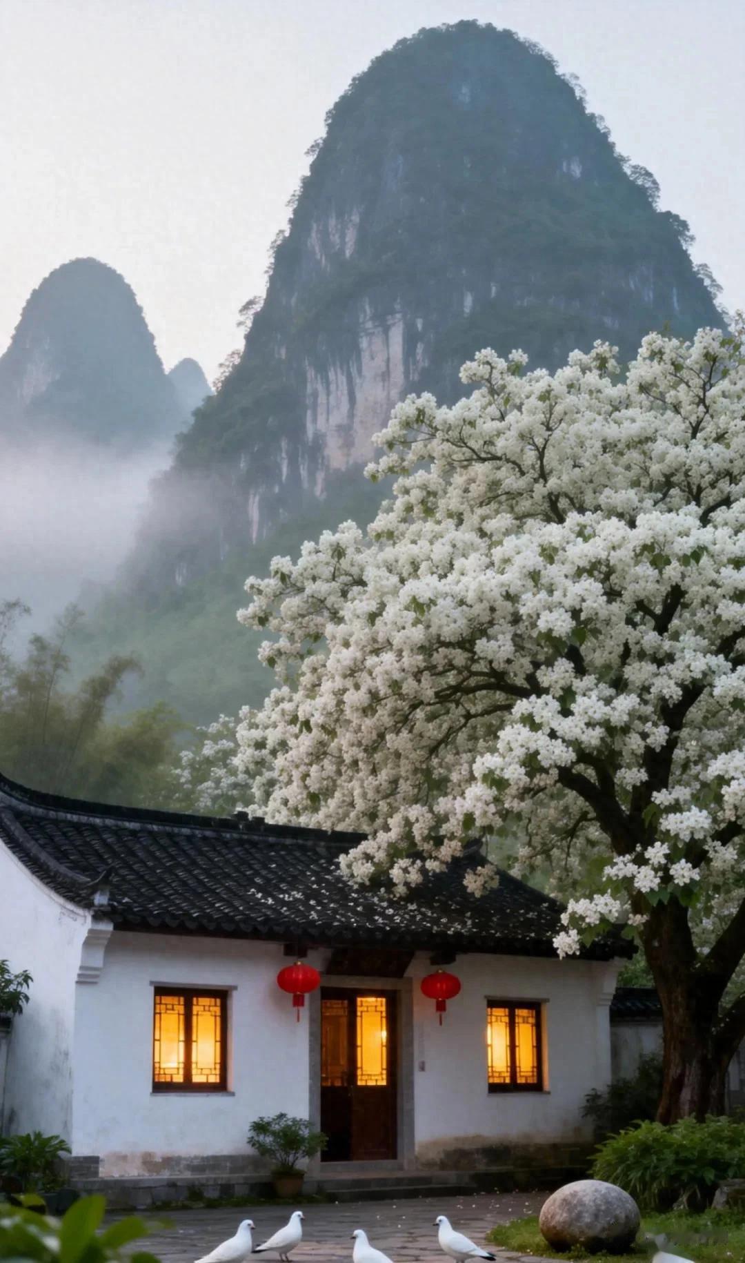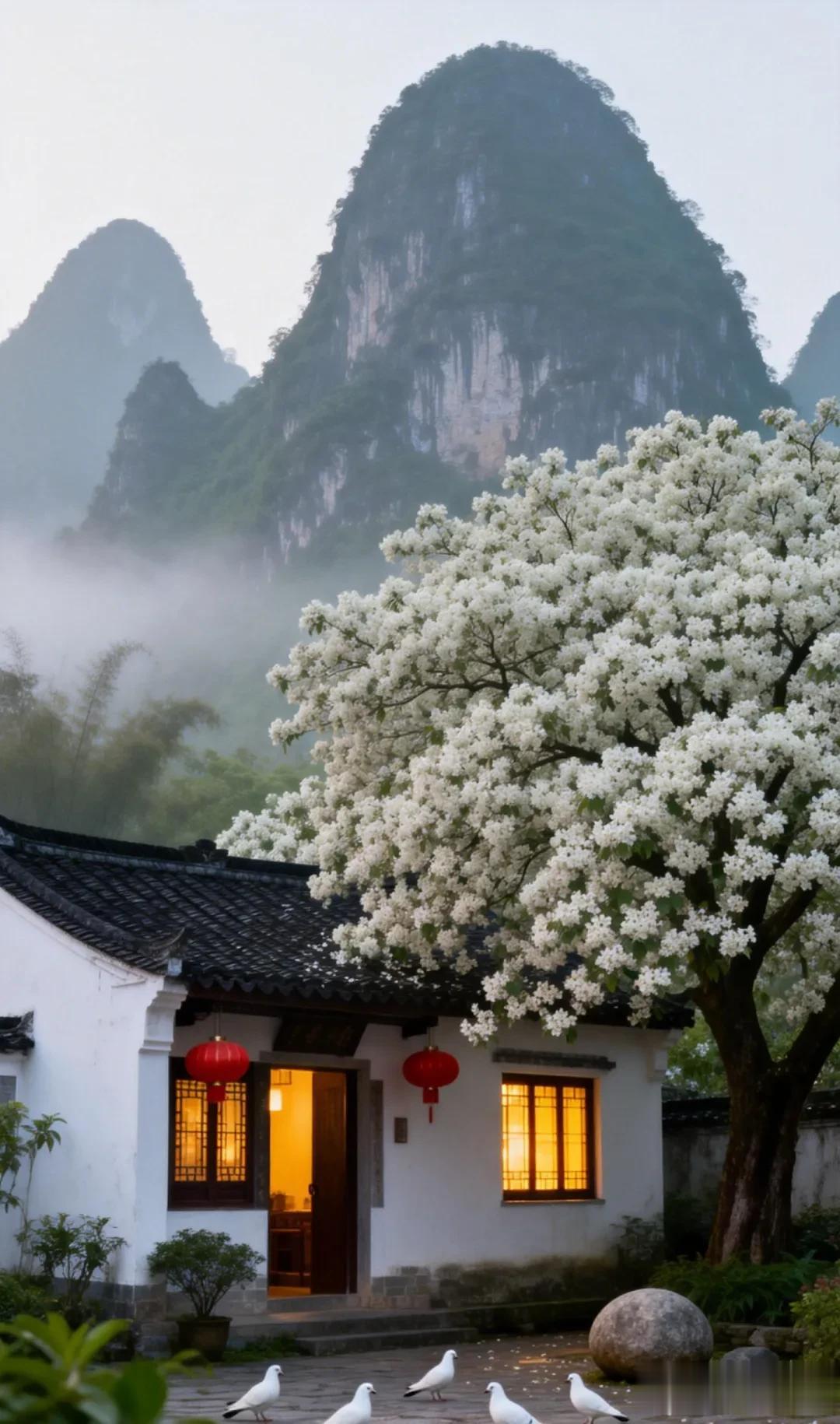 老树每年此时都开得这般认真,仿佛要把攒了一冬的月光,都绽成枝头的云。花落在瓦上当雨声,落在肩上……就成了故人的问候。