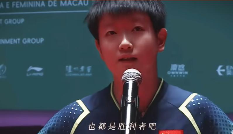 孙颖莎在澳门世界杯赛后的采访中,又一次展现了她的大度和友善。她不仅感谢了支持自己的球迷,还感谢了支持王曼昱的球迷。这种行为真的很暖心,显示出她对对手和所有球迷的尊重。更难得的是,她说无论最后谁赢谁输,她和王曼昱都是胜利者。这种看待比赛的态度,真的很高尚。她没有把注意力只放在输赢上,而是看重了过程和付出。这种心态,其实对运动员来说是很重要的。因为如果只看结果,那压力会很大,也容易产生负面情绪。但如果能像孙颖莎这样,把每次比赛都当作一次成长的机会,那就能更好地享受比赛,也更容易发挥出最好的水平。而且她这种态度,也在潜移默化地影响着其他运动员和球迷。让大家看到,竞技体育不仅仅是为了赢,更重要的是通过比赛提高自己,享受这个过程。