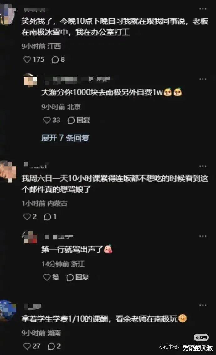 网友7:拿着学生学费1/10的课酬,看俞老师在南极玩