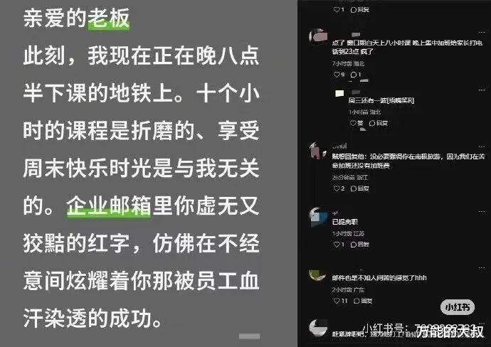 网友1:亲爱的老板,此刻,我正在晚八点半下课的地铁上……企业邮箱里你虚无又狡黠的红字……