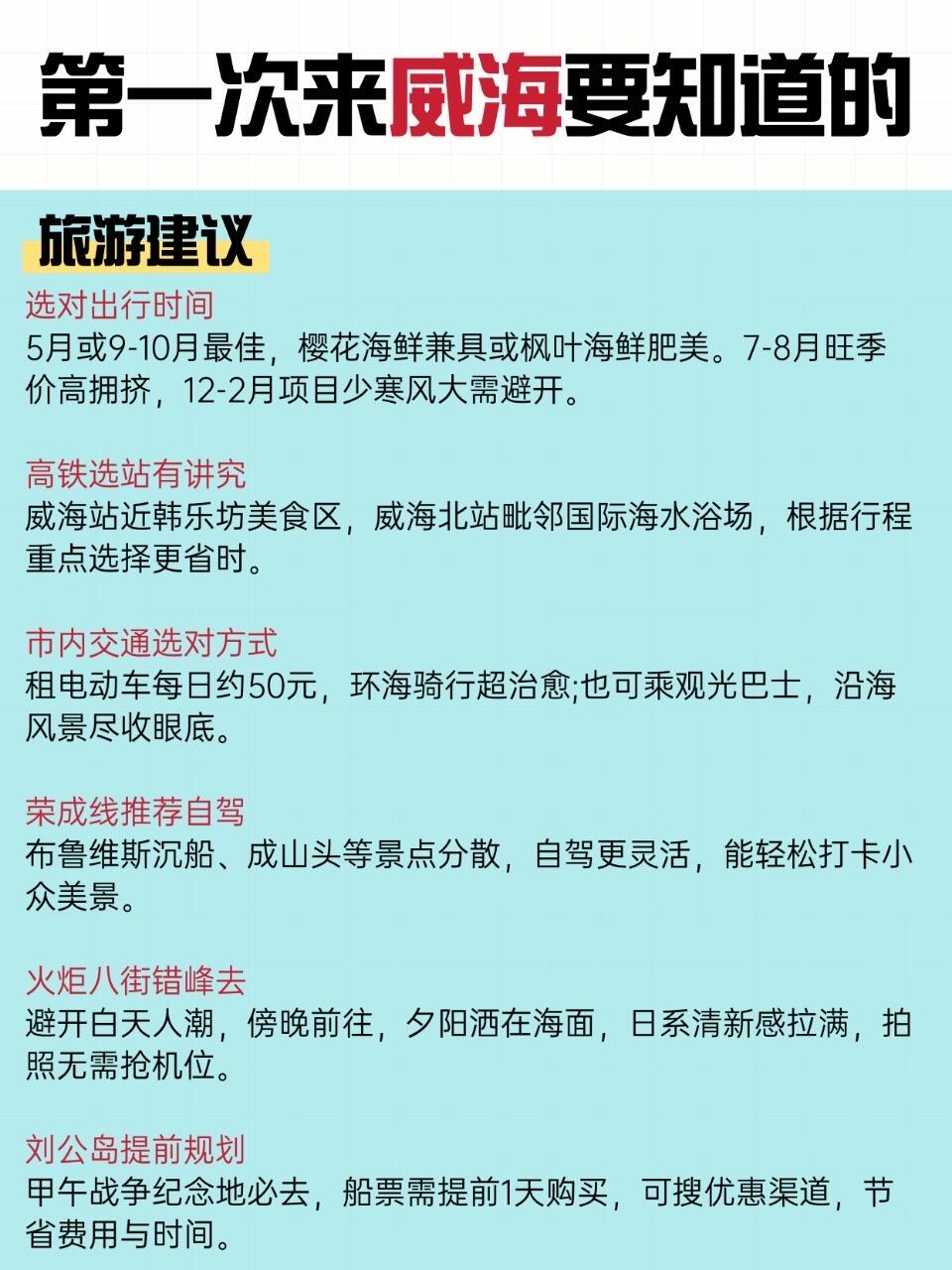 假期打算去威海的宝子们!!给大家整理一份旅游攻略!!需要的姐妹码住哦~