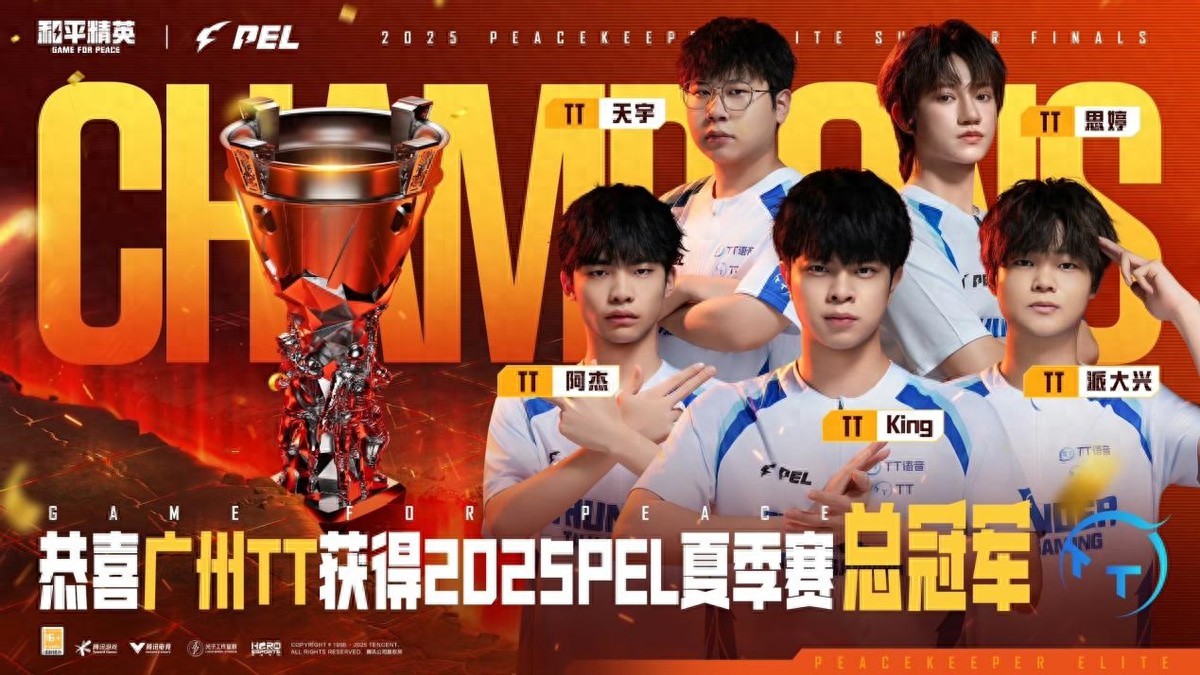 9月19日-21日,2025 PEL夏季赛总决赛在武汉体育中心体育馆火热举行,16支顶级战队吹响集结号角。经过为期3日共18场比赛的激烈角逐,广州TT战队强势登顶总冠军,捧起PEL第16个冠军奖杯!