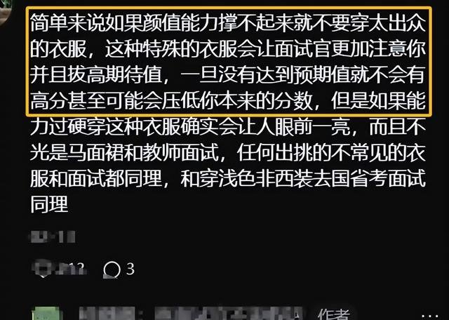 在这场关于得体与个性的讨论中,问题的核心不在于“马面裙”本身,而在于考生是否明白面试的本质。你觉得,追求个性是否值得冒丢分的风险?当能力不足时,外在的装扮能否真正为你加分?下一次站在面试考场上,你会如何平衡内在与外在的关系?