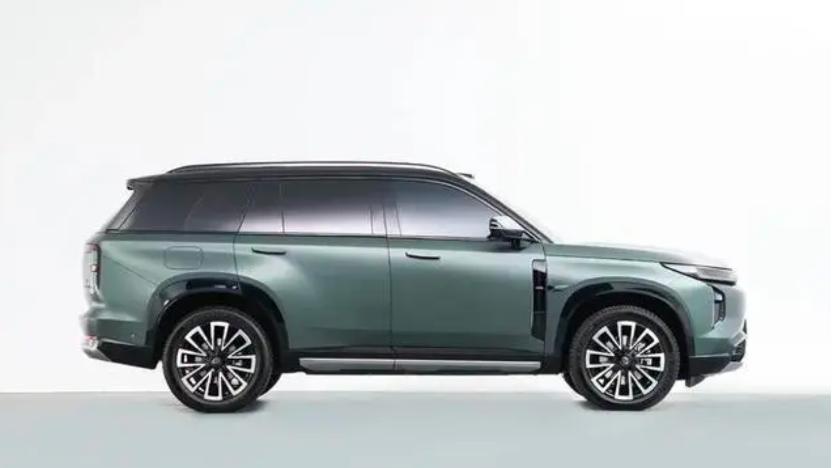 车身侧面采用方正硬朗的线条,车身狭长的腰线从前灯组延伸至尾灯组,两边前后隆起的轮眉线条,营造出极强的力量感。细节方面还采用了悬浮式车顶及隐藏式门把手设计,同时在D柱能量呼吸灯,通过呼吸灯的频率来显示车辆充电状态,使整车有着不错的时尚感。车身尺寸方面,新车长*宽*高分别为4900*1950*1780mm,轴距为2880mm,并且据说离地间隙有200mm。