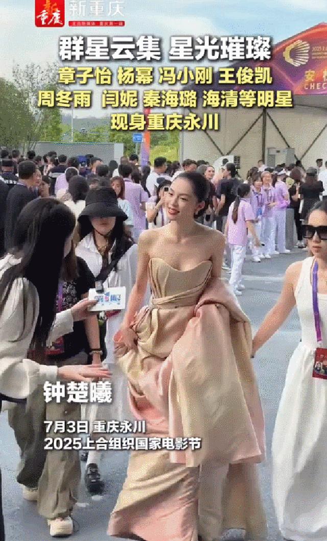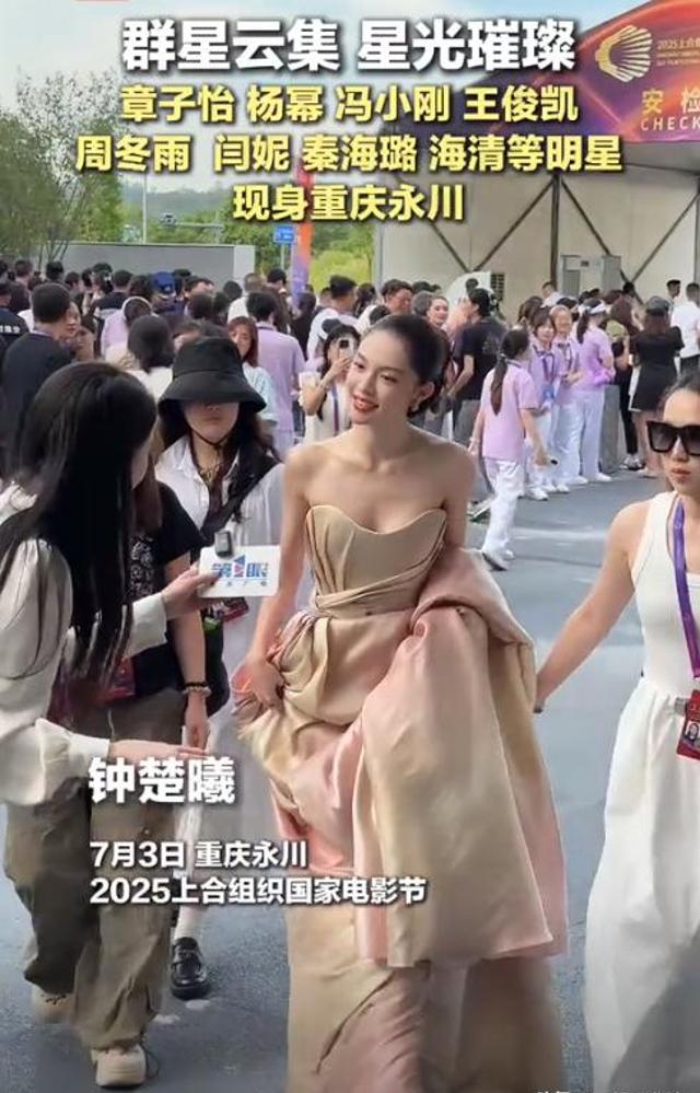 而长相一般、但穿着大气且性感的钟楚曦,也是面带微笑的歪着头跟媒体打招呼。