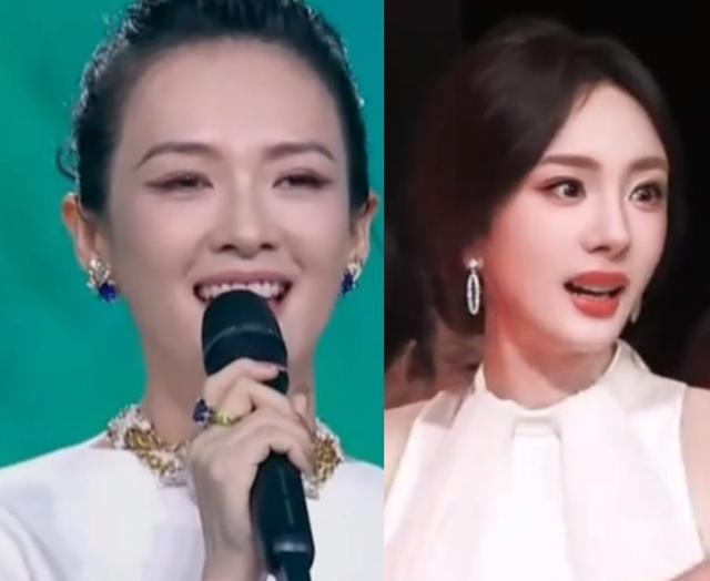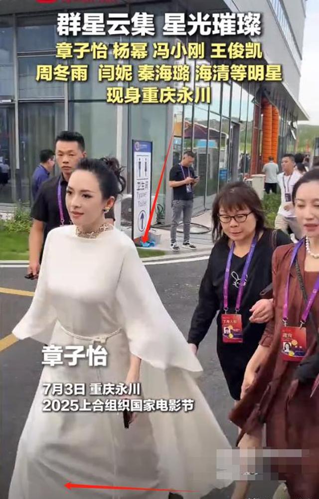 而章子怡白色的连衣裙,跟杨幂之前参加活动的裙子,有些撞型了。