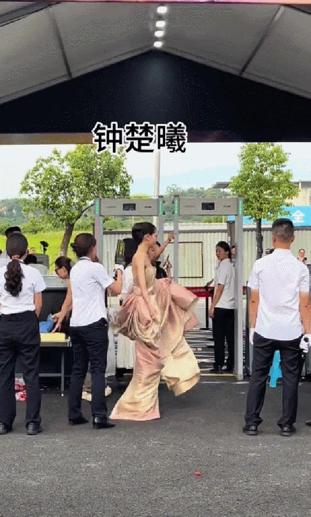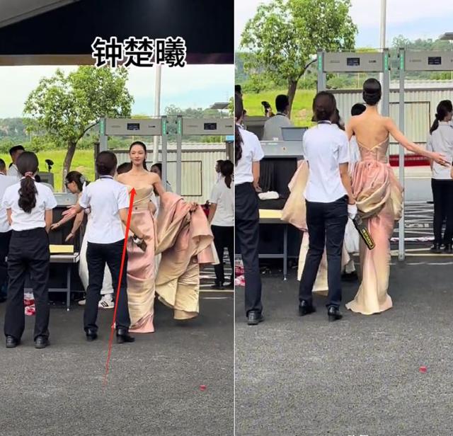 在进场安检时,能看出钟楚曦落落大方的把手臂撑了起来,让工作人员“正反面”的检查。