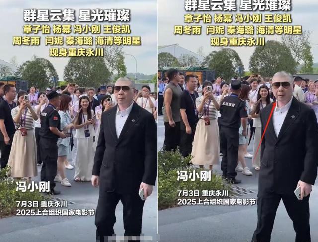 跟身边都是助理的杨幂相比,大导演冯小刚,则是穿着“黑色西装”一个人走了进来,很清爽和利索。