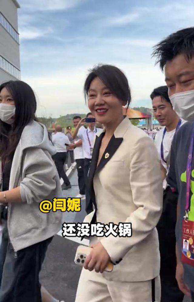 而被调侃“有没有微醺”、五官拧巴且肿胀的闫妮,她则表示“还没吃火锅。”