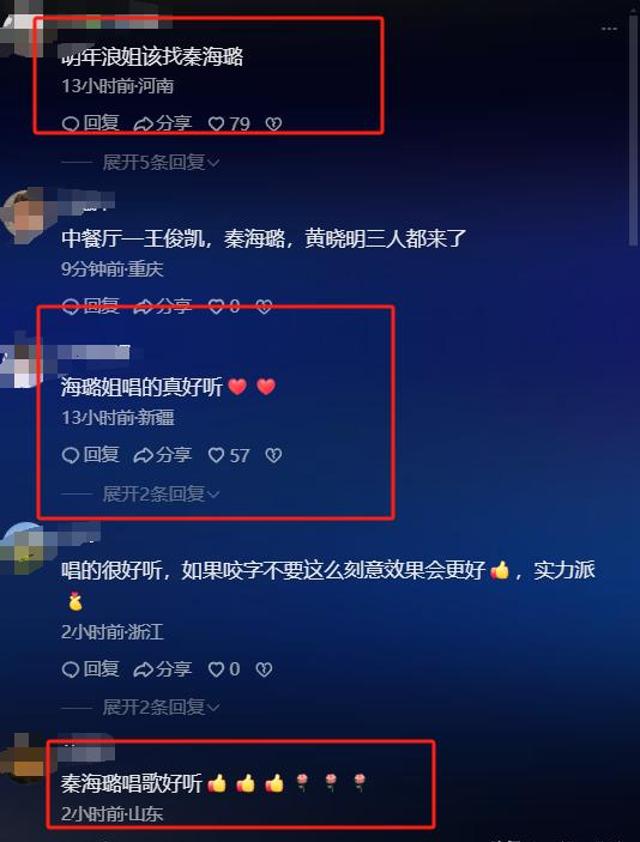 虽然秦海璐没有像杨幂、章子怡、胡军和王俊凯一样,在台上讲话和自我介绍,而是唱了一首《这世界那么多人》。