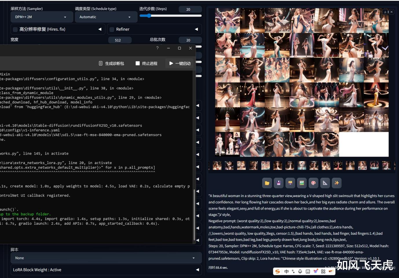Stable Diffusion是常用的AI软件,在老的使用RTX 4070 SUPER的电脑上一组40个图像的输出时间是55.6秒。
