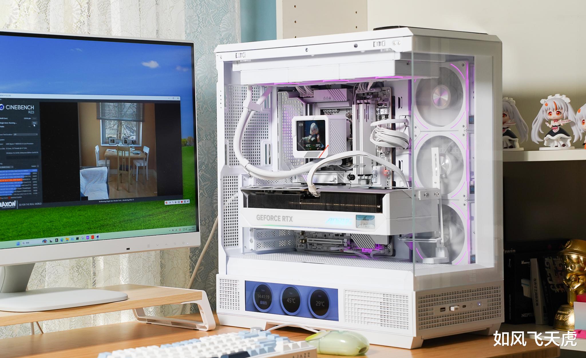 它还具有丰富的接口与智能化管理体验。板载HDMI、万兆网卡、WiFi 7、USB4 40Gbps、多组ARGB与RGB联动控制,配合GCC软件实现LCD轮播、风扇曲线自定义与灯光联动,让主机不仅是性能猛兽,更是桌面艺术品。无论是AI创作者、硬核玩家,还是追求极致颜值的DIY爱好者,这台主机都可以满足您的需求。颜值与实力并存,全能与个性兼得。