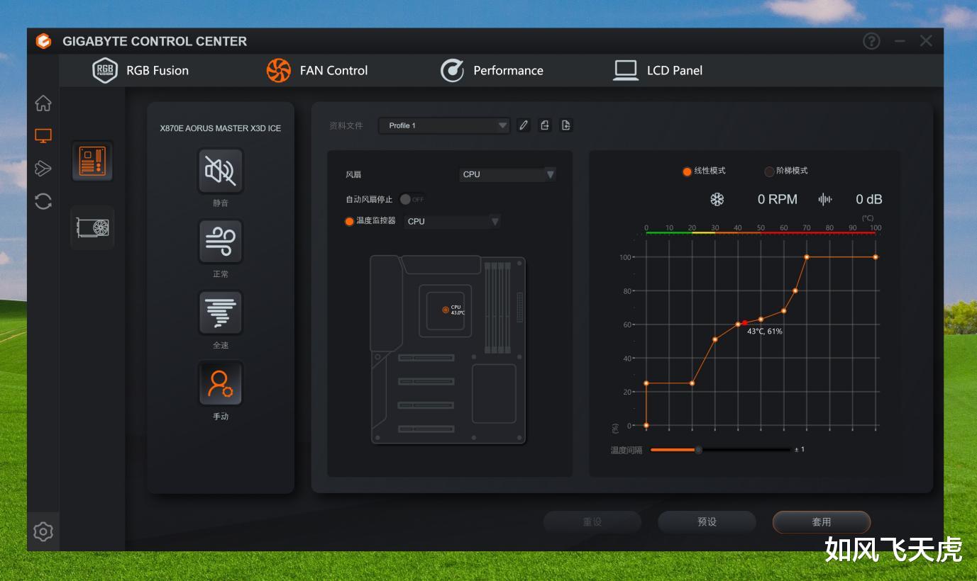 可以控制下风扇曲线,喜欢安静的可以降低点风扇转速。喜欢显卡凉爽的,可以增加下风扇转速。当然,也可以选择自动。