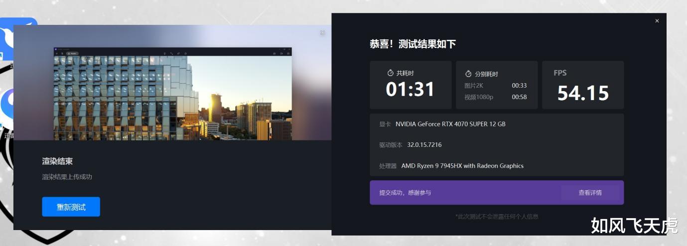 D5渲染器是一款3D创作工具,以实时渲染为起点,无缝连接多种建模软件,提供一种全新的工作流。D5目前已广泛应用于建筑、景观、室内、婚礼等领域,助力设计和可视化表现,打造愉快、高效、自由的3D创作体验。使用老的RTX 4070 SUPER的电脑测试显示耗时1分31秒,FPS54.15。