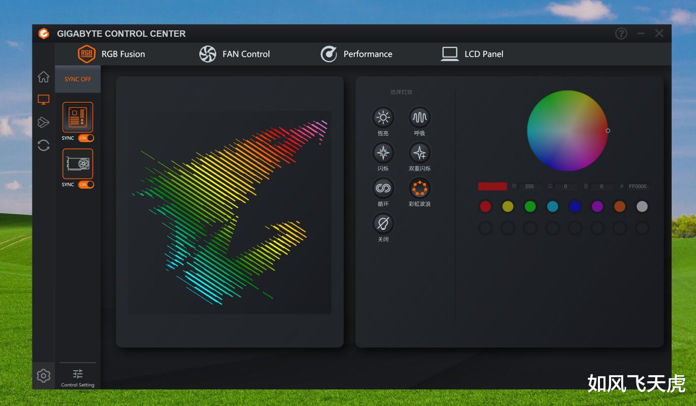 RGB控制,可以选择让显卡和主板的RGB彩光联动,呈现同一种风格。