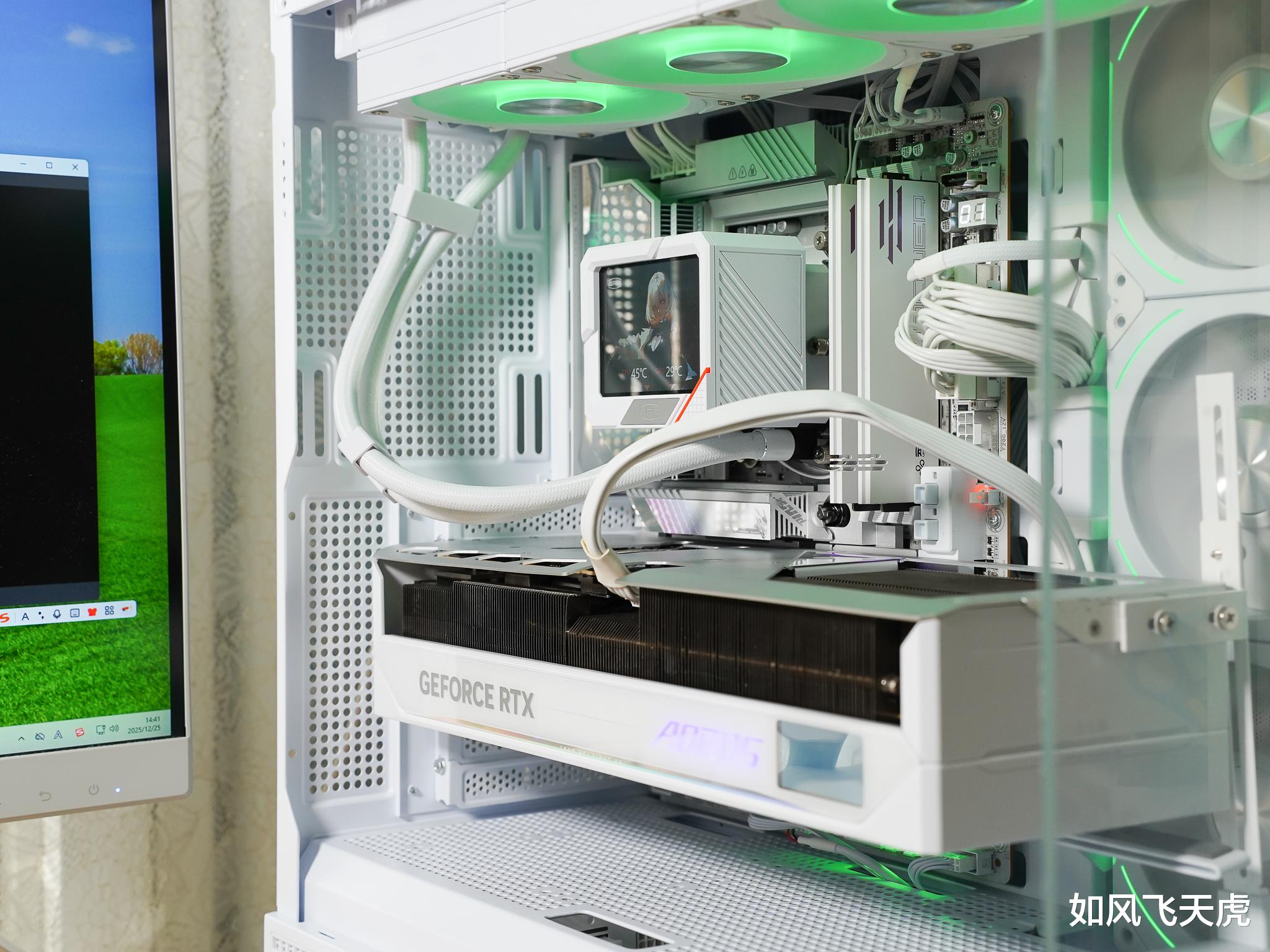 最近就组装了一台这样搭配的电脑,采用AMD 9800X3D CPU,支持X3D 增强2.0技术的技嘉X870E AORUS MASTER X3D ICE超级冰雕主板,以及具有强大AI性能和游戏性能的显卡AORUS GeForce RTX™ 5080 MASTER ICE 16G,又称技嘉RTX 5080超级雕ICE,组成了兼具AI生产力和游戏力的“全能型”电脑。
