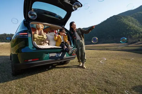 座椅的设计也很贴合家庭用户,用的是亲肤的有机硅面料,摸起来柔软又舒服,而且还具备抗菌抗污的特性,家里有小孩的都知道,孩子在车上难免会弄脏座椅,有了这个材质就省心多了,笔迹、零食污渍用湿毛巾一擦就能干净。更贴心的是,前排座椅可以180度完全放平,和后排连起来就能变成一张近1.8米长的“移动大床”,平时带孩子出去玩,孩子累了能在上面躺着休息,中午我在车里小憩一会儿也很方便。