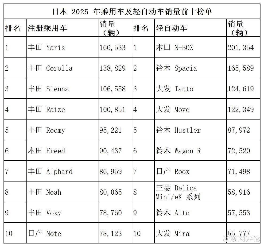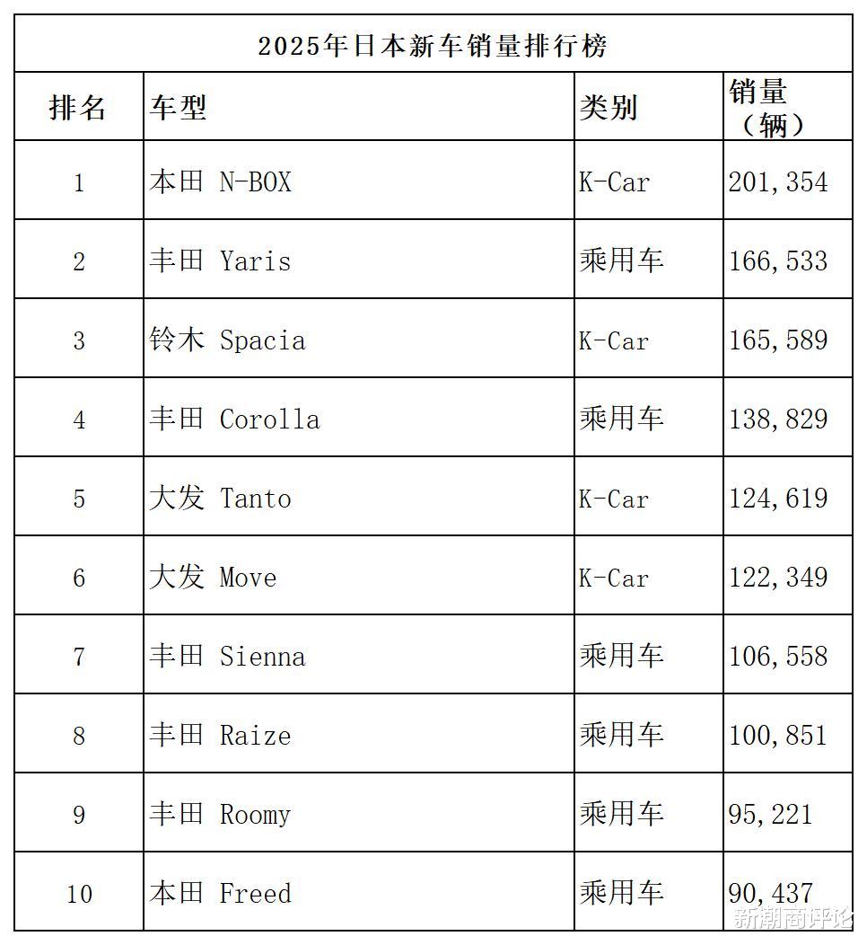 本田N-BOX连续第四年成为日本最畅销车型,但销量比2024年减少2.4%,降至201,354辆,不过仍是市场上唯一超过20万辆的车型。该车凭借宽敞的车内空间、出色的油耗性能以及170万日元(约合人民币7.5万元)起的亲民价格,获得了消费者的支持。