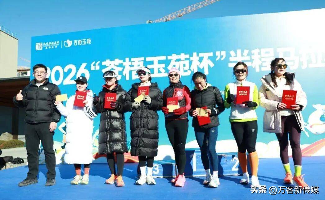 在半程女子组中,赵锦秀获得半程第一名,李盈利获得第二名,唐召兄获得第三名。领奖台上,获奖选手高举奖牌,洋溢着拼搏后的喜悦。他们不仅用奔跑突破自我极限,更用坚持诠释“挑战自我、永不放弃”的体育精神。