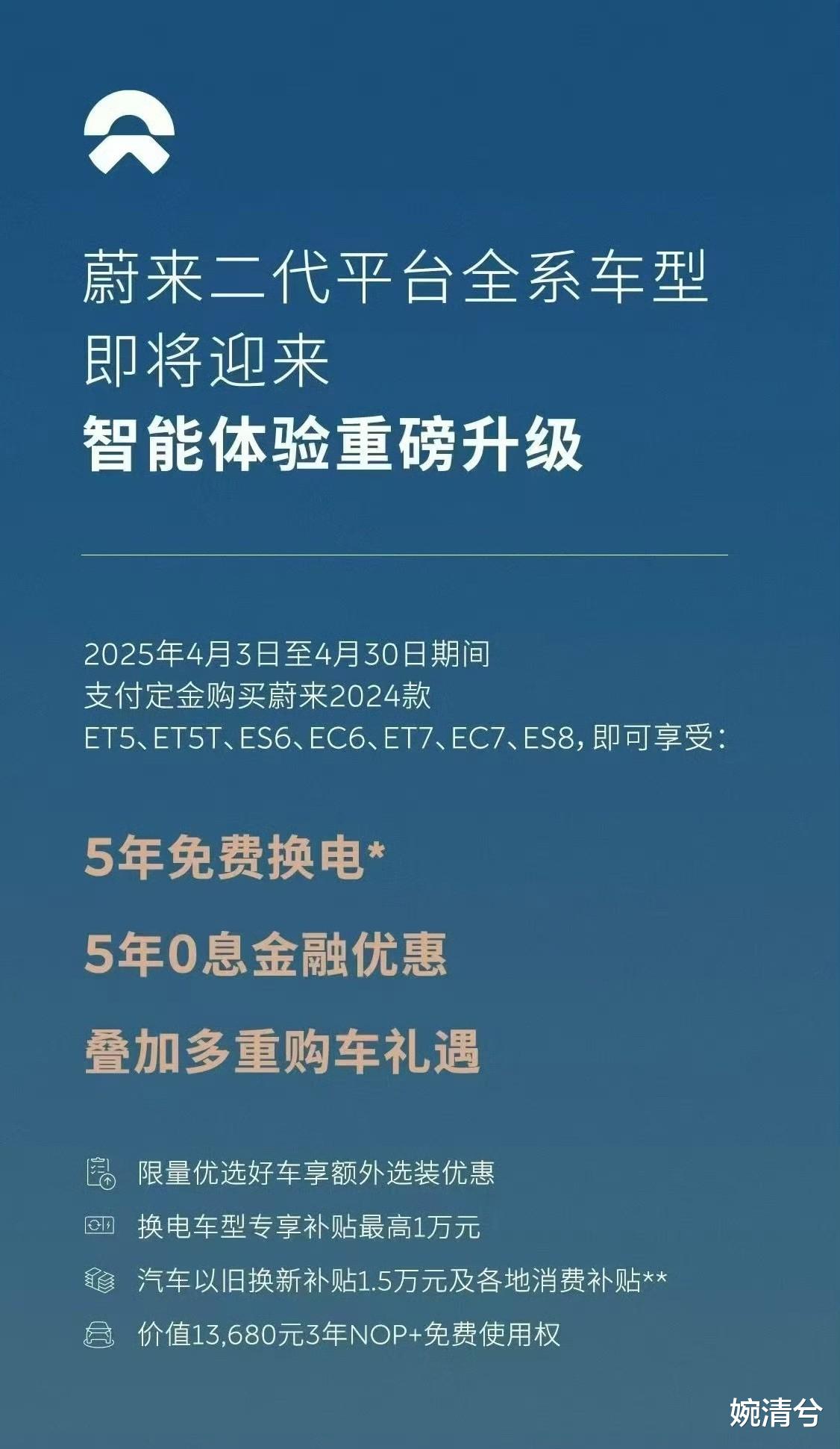 最后,我想给各位准备买车的朋友们一些建议: 如果你非常急需用车,那么现在参与蔚来的促销活动,或许是个不错的选择,毕竟能省不少钱。 但是, 如果你不急着买车,我强烈建议你等等NT2.5的发布。 新车上市,老款车型价格会下降,你就能以更低的价格买到心仪的车,何乐而不为呢? 或者,你也可以先租车过渡一下,等合适的机会再出手也不迟。