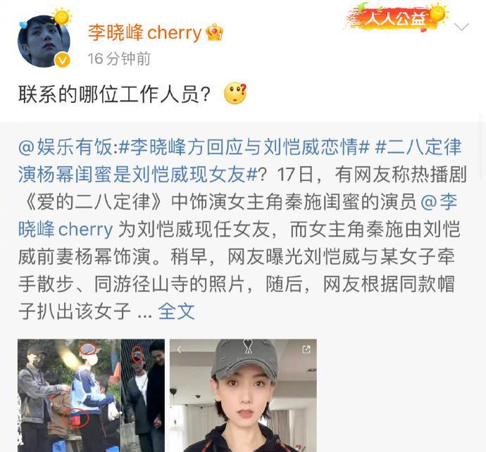 当事人直接发出疑问,看来辟谣恋情的所谓工作人员,连李晓峰本人都不知情。