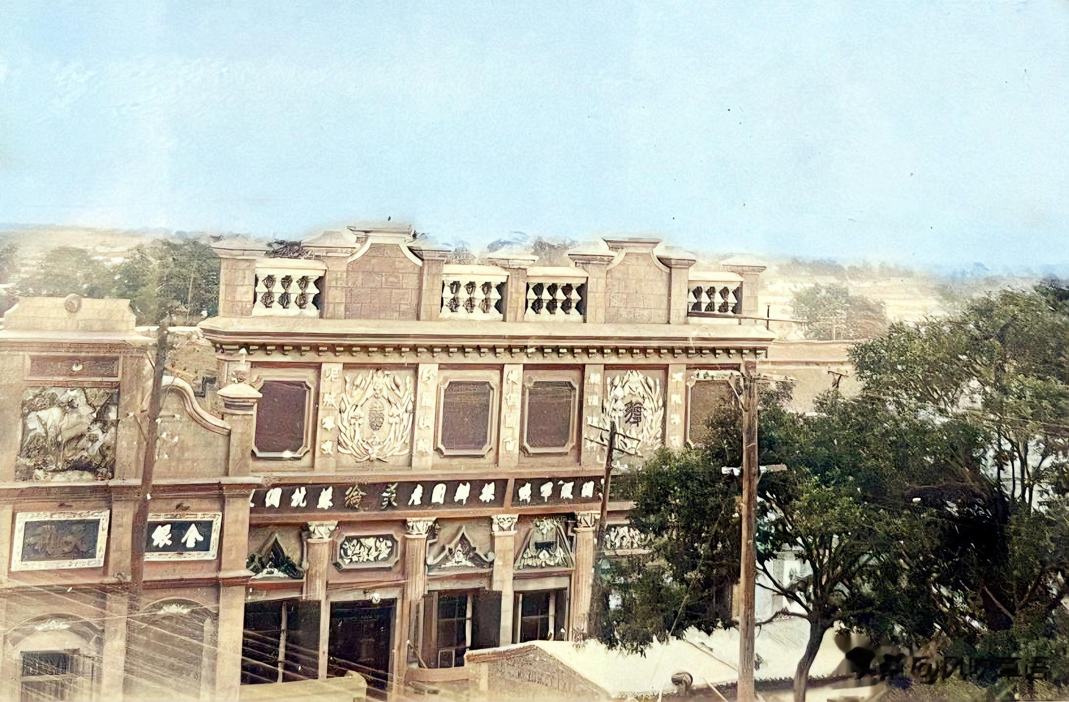 一座门面非常精美的商业建筑,繁复的装饰具有民初商店的风格。其背后的高大烟囱便是宏豫炼铁厂所在地。这座工厂建成于1924年,是新乡的第一座炼铁厂,也是河南省当时最大的冶铁企业,可惜的是投产不久因设备故障、成本过高而停产。在当时,民间还流传着 “宏豫烟囱火磨楼,赛过四座城门楼” 的说法。
