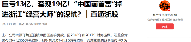 主要信源巨亏13亿,套现19亿!“中国前首富”掉进浙江“经营大师”的深坑? ▏直通浙股——2024-01-08都市快报橙柿互动