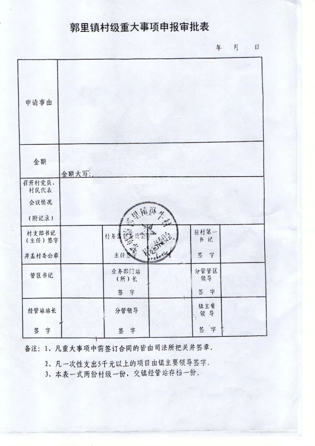 当时有没有郭里镇村级重大事项申报审批表?