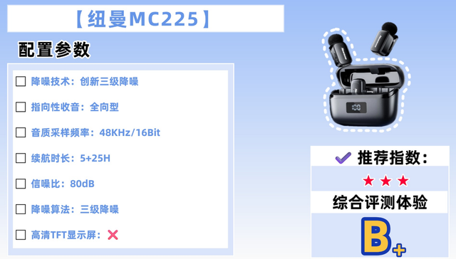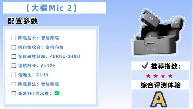 推荐使用场景:日常Vlog、语音记录、线上会议,主打高性价比与易用性,适配新手用户。