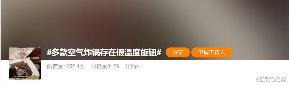 近日,#多款空气炸锅存在假温控旋钮#的话题冲上了热搜。事情的起因是一位网友拆解了某知名品牌的空气炸锅,发现其中的温控旋钮背后没有连接任何电线,简单来说,这个按钮在实际操作中并不能起任何作用。