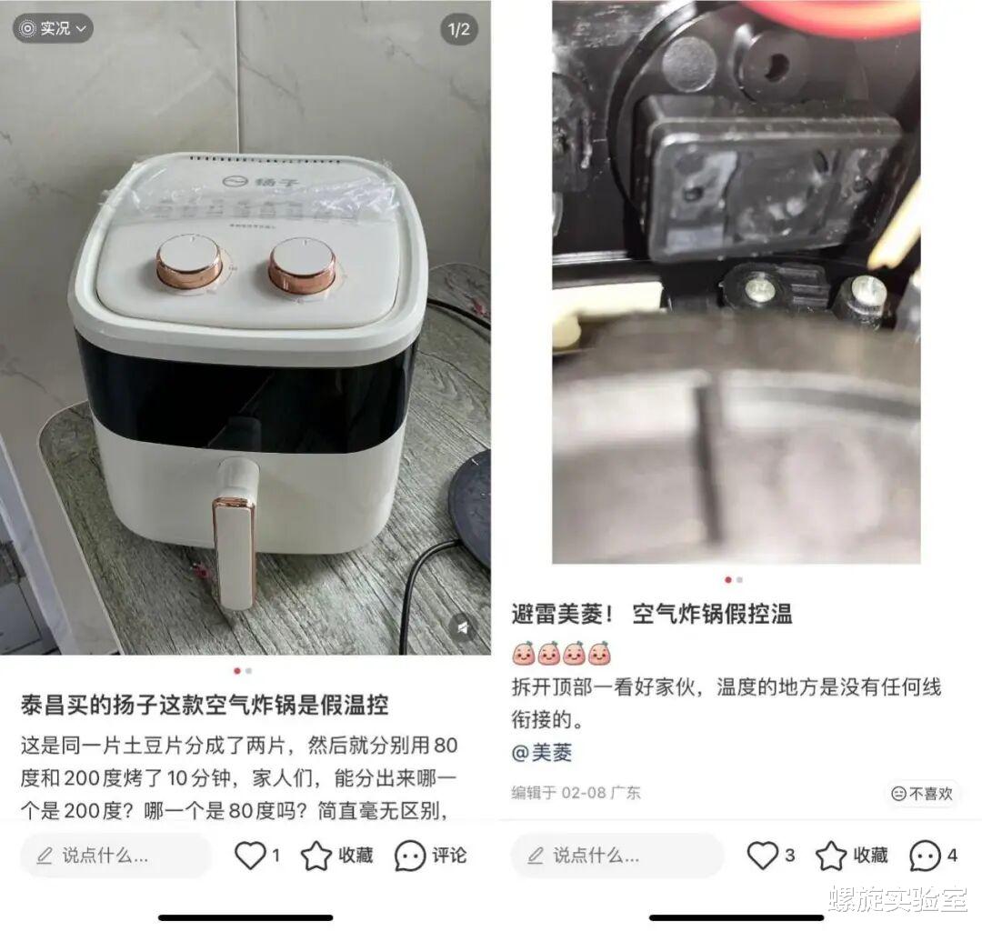 事后,这名网友咨询了商家,对方称“这只是装饰品”。本以为这已经足够魔幻,没想到在这一事件被曝出后,更多网友开始拆解自家的空气炸锅,才发现“假温控旋钮”居然不是个例。