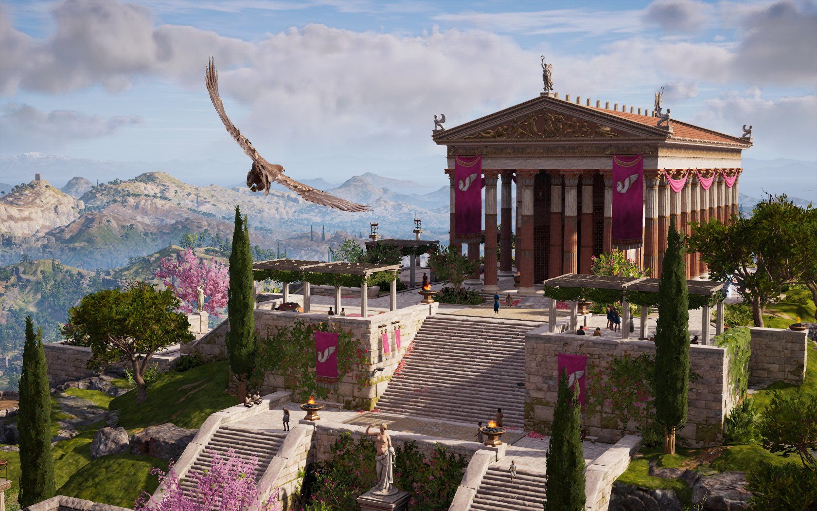 《刺客信条:奥德赛》对科林斯宗教生活的还原令人印象深刻。最引人注目的莫过于阿芙罗狄忒神庙,这座供奉爱与美之女神的神庙历史上以其庙妓闻名,据说曾有上千名庙妓在此服务。神庙的立柱采用了典型的科林斯柱式,这种华丽的柱头设计正是起源于此城,后来成为古希腊三大柱式之一。