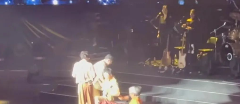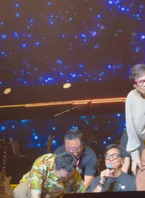 舞台上光影交错,音乐激昂,71岁的钟镇涛正沉浸在演出的热烈氛围中。谁料,一个意外的转身,他突然失去平衡摔倒在地。眼看谭咏麟、陈友和叶智强赶来搀扶,起身的瞬间又是一个踉跄,这次连带着热心搀扶的队友们也一同滑倒。