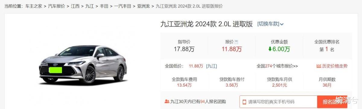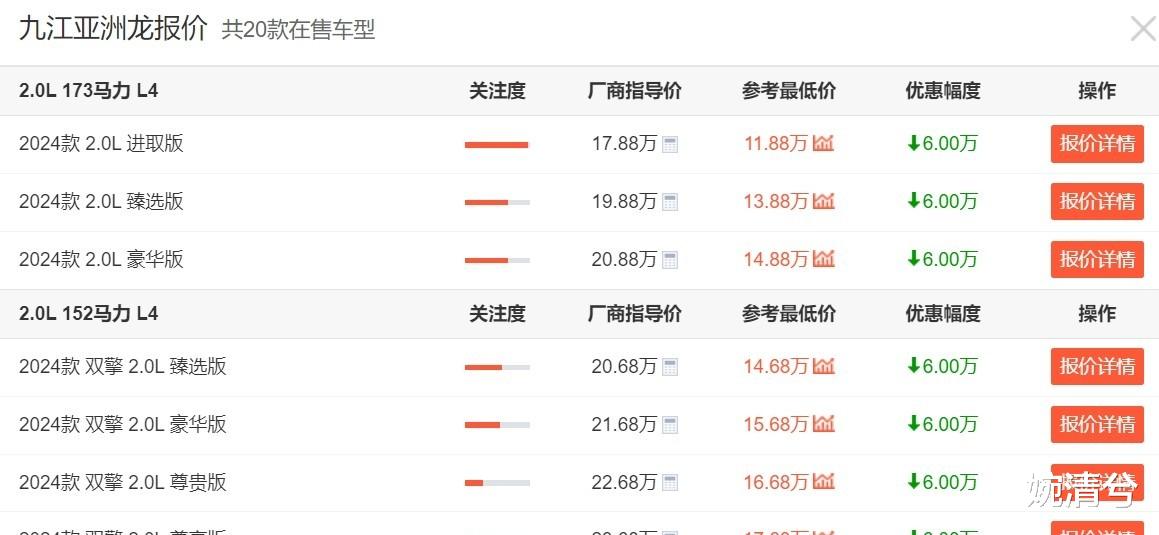 但需要注意的是,九江的11.88万元只是全国最低价,其他地区的优惠幅度可能没这么大。如果预算刚好卡在这个区间,买亚洲龙确实挺划算,但也要留意低配车型的配置是否够用。