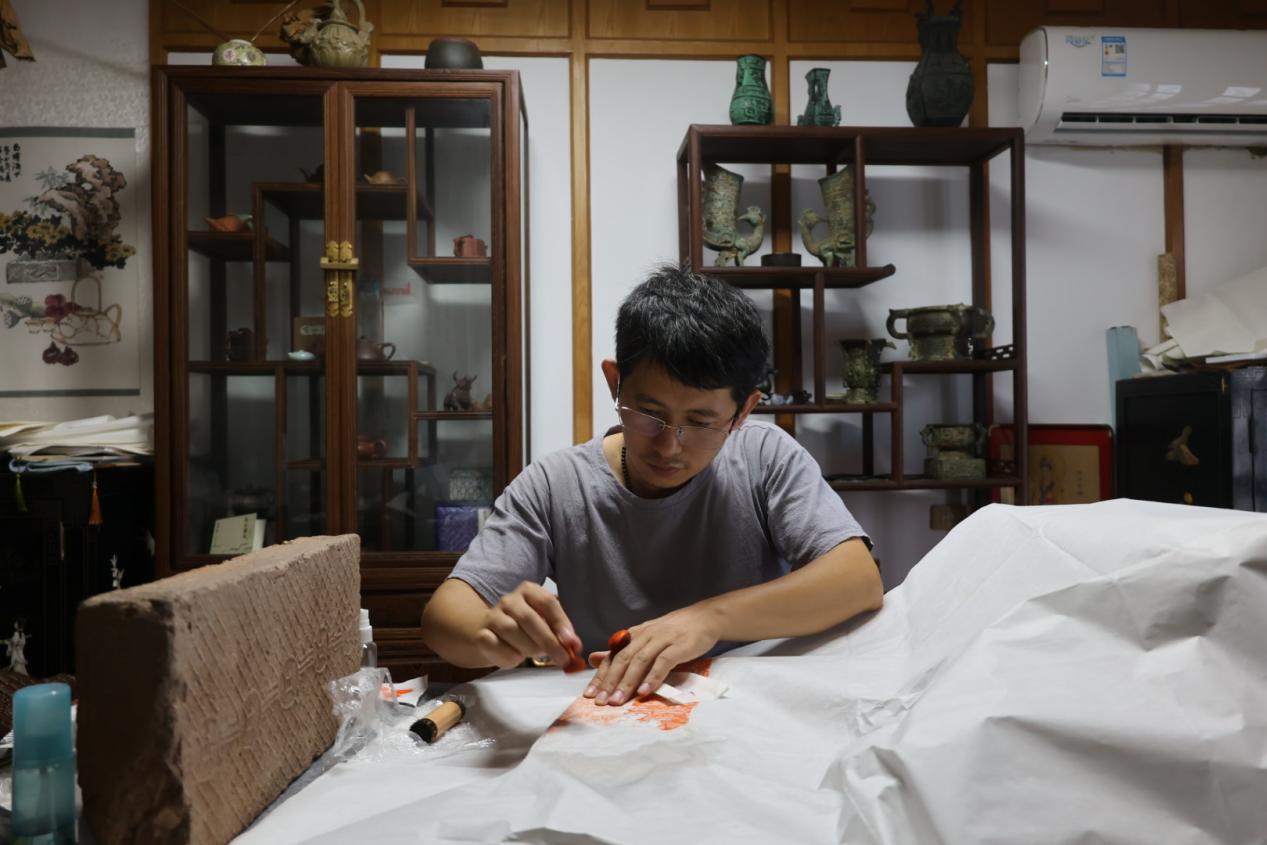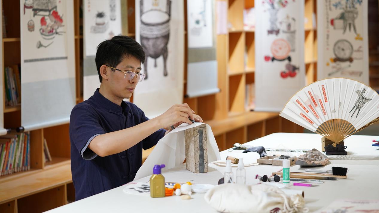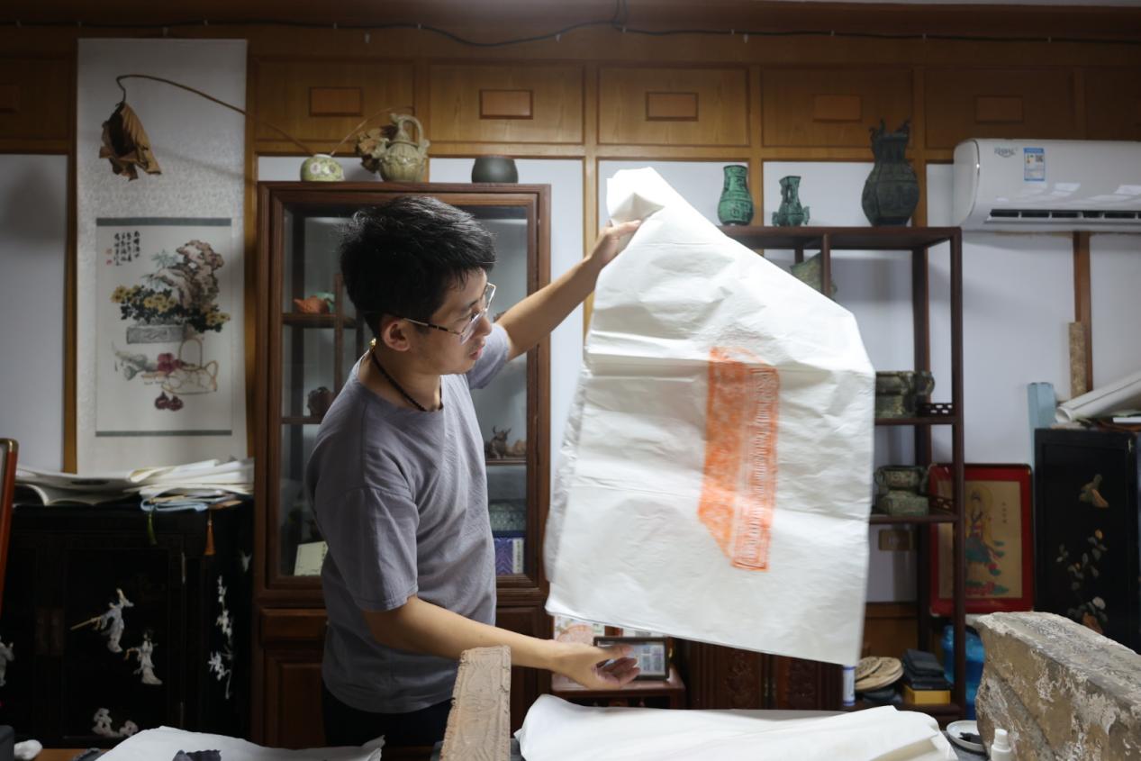 在王志強看來,金石學以宋、清為代表顛峰,研究考據是其鮮明特質,但非遺傳承不能枯燥複製。“金石文化要與其他藝術種類相互結合,更要放眼世界跨界合作。”數十年來,他帶領徒弟們一直堅持“金石傳拓公益課”,以傳拓教學為紐帶讓金石文化走進大眾視野。