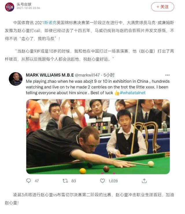 这场斯诺克世锦赛决赛真的太好看了,赵公子再次展示了不一样的自我,首战以7:1之姿牢牢拿捏对手马克威廉姆斯。