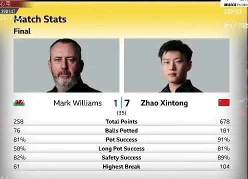 第一阶段,需要指出的是,赵心童的运气是真好,运气加实力外加马克威廉姆斯心态炸裂,也才得以7:1收官,不过第二阶段就说不定了,我个人感觉,他应该会有超常发挥表现,毕竟第一阶段他没展示出个啥呀,可以说,他的斗志是要比赵心童要强的,毕竟经历了这么多年的比赛,也沉淀出不少了,相信很快就调整过来了。