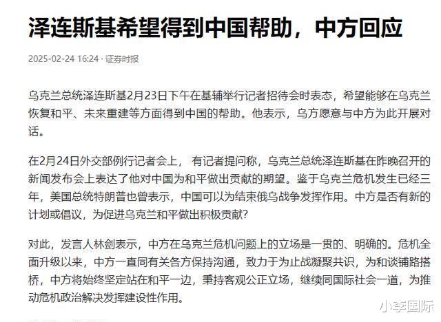 从这能看出来哈,泽连斯基这次态度来了个大转弯,简直就跟以前完全不一样了。这背后说不定啊,是想着借咱们中国的影响力,给自己在谈判桌上多争取点筹码呢。俗话说“无利不起早”,在国际事务里,各方的动作往往都带着自己的盘算。