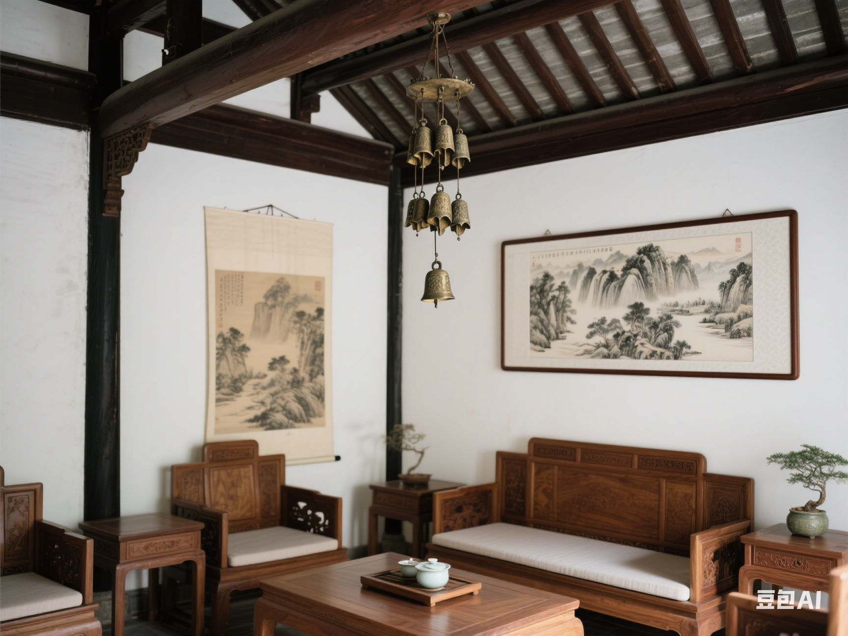声波共振:在客厅悬挂铜风铃,每日巳时(9-11 点)轻敲九次,激活空间能量。或播放古琴曲《高山流水》,通过声波频率改善气场。
