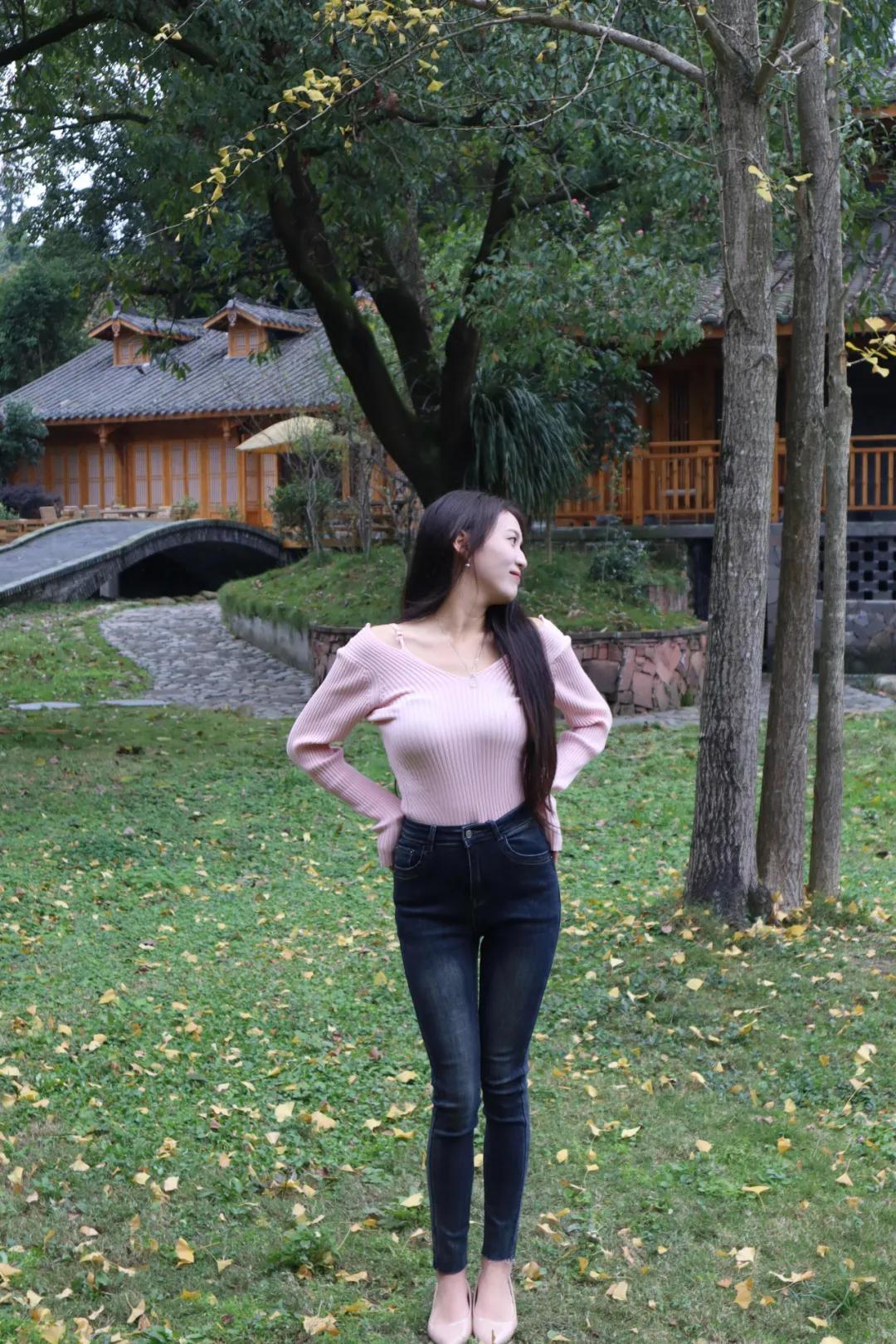 全身照拍照并不一定都要站得很直,可以看下下面这个动作,站立一只脚轻轻弯曲会让姿态更放松,双手扶胯能稳定身体,突出身材,看向一边时画面会显得很干净自然。