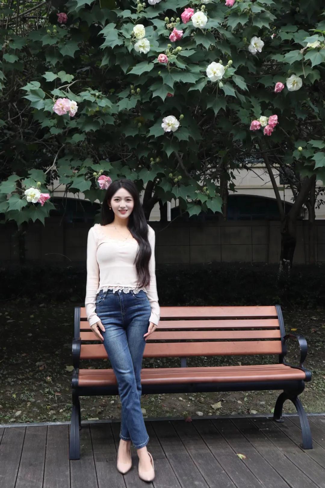 我们拍全身照照时,可以并脚站立配合手放胯的站姿,这样很容易拍出好身材比例,身体自然挺直之后,抬头挺胸,腰线会更清楚,抬头看镜头的时候,整个人会显得自信又大方。