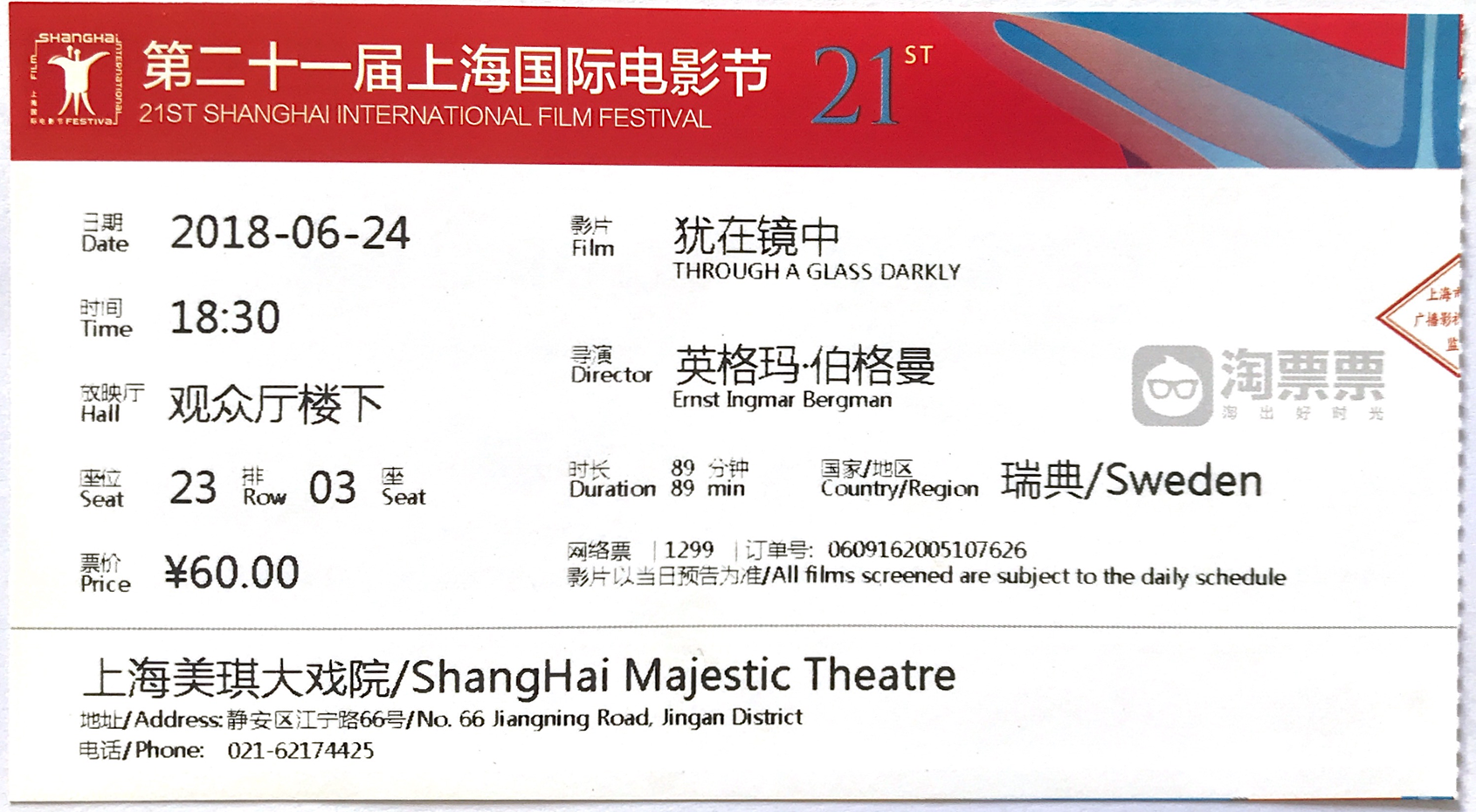 图 10 《沉默》纪念票根