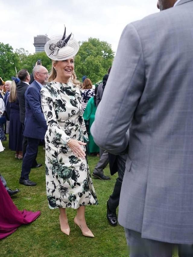 作为王室的第一场花园派对,参加的都是和查尔斯国王同辈的成员。安妮公主丝光连身裙精致贵气,格洛斯特公爵夫人优雅端庄,而作为其中最年轻的爱丁堡公爵夫人苏菲真是让人眼前一亮。苏菲王妃穿着一袭白底水墨风花裙,搭配白色网纱礼帽,完美融合了东方复古的典雅和王室的精致贵气,美出新高度。
