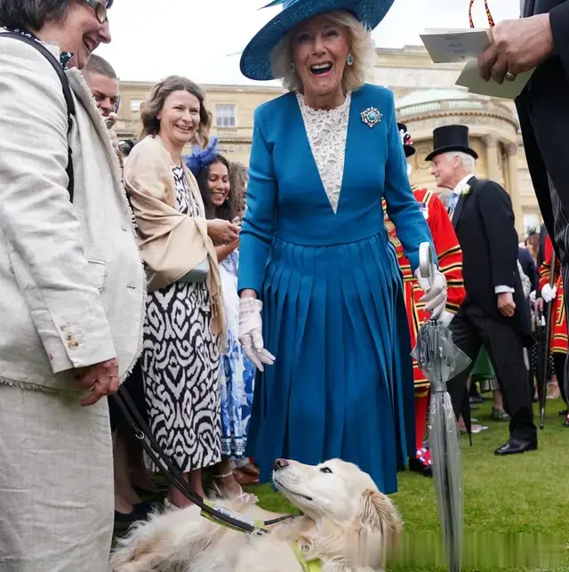 卡米拉在活动中,发现导盲犬哈沃斯后,这位热爱动物的王后弯下腰挠了挠它的肚子。没有凯特王妃在场,卡米拉王后当天可谓是风光无限,而笑得一脸灿烂的卡米拉王后更是被赞“充满了青春活力”!