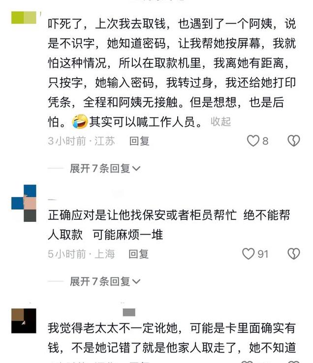 也有网友说不一定老太太是讹人,可能卡里有钱被家人取走了,或者记错了。