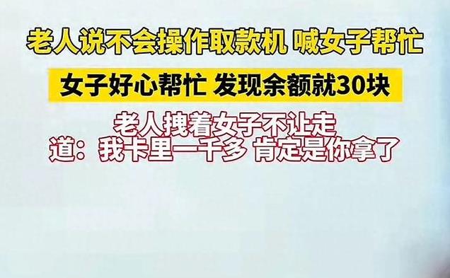近日,有网友发布一段视频,她去银行取钱的时候,遇到一位老人说不会使用取款机,于是请求女子帮助。