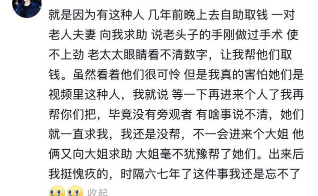 也有网友分享帮助的过程,对方不认识字,输入密码的时候背过去身子,现在想想就觉得害怕。
